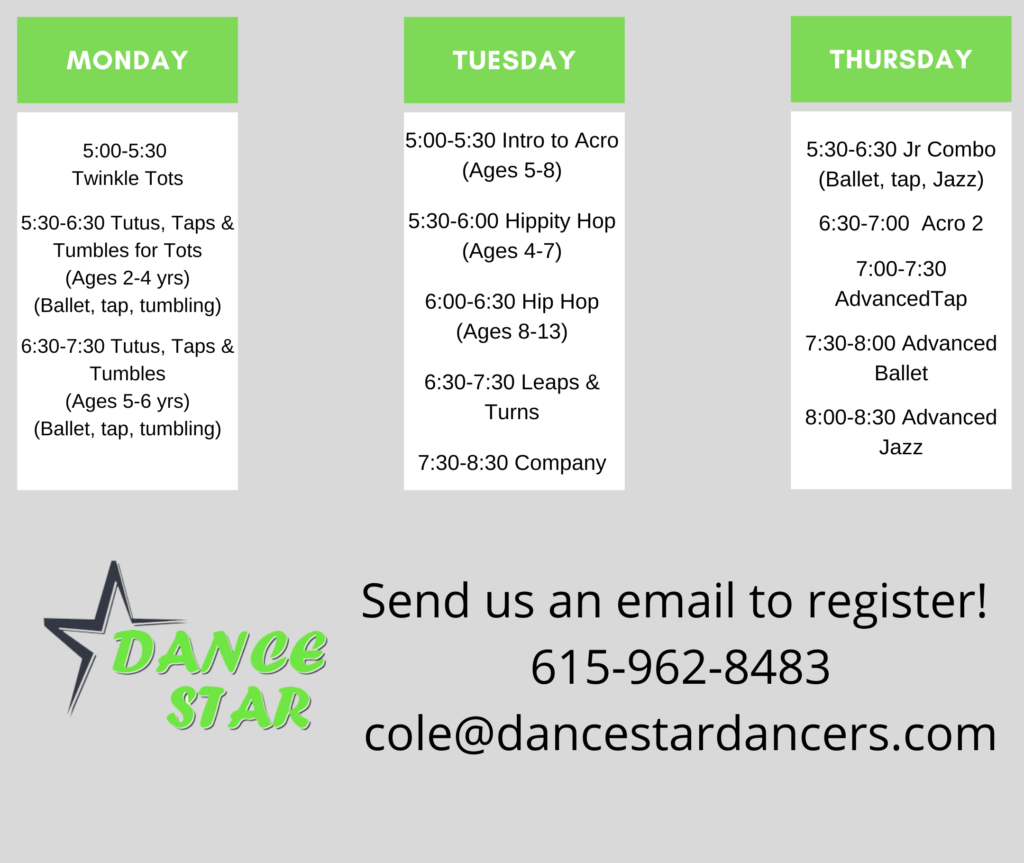 (Ages 2-4, Ballet, Tap and Tumbling)